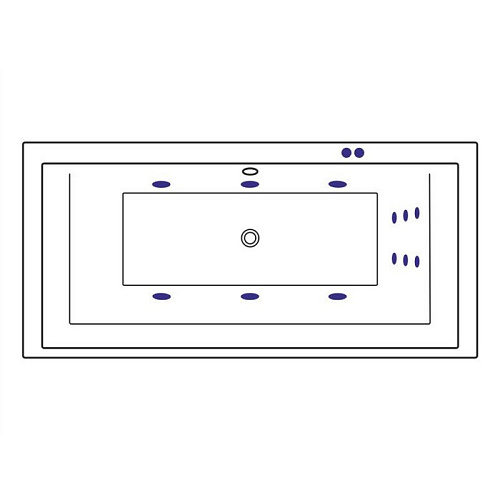 Комплект поставки включает в себя: - Ванна на каркасе, со сливом-переливом; - Гидромассажная система (6 форсунок MIDI-JET); - Массаж спины (6 форсунок MICRO-JET); - Пневматическое управление (пневмокнопка вкл/выкл, регулятор подачи воздуха в систему