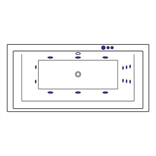 Комплект поставки включает в себя: - Ванна на каркасе, со сливом-переливом; - Гидромассажная система (6 форсунок MIDI-JET); - Массаж спины (6 форсунок MICRO-JET); - Массаж ступней (2 форсунки MICRO-JET); - Пневматическое управление (пневмокнопка вкл/выкл, регулятор подачи воздуха в систему); - Кран-баланс (регулировка системы массажа спины); - Защита от сухого пуска.