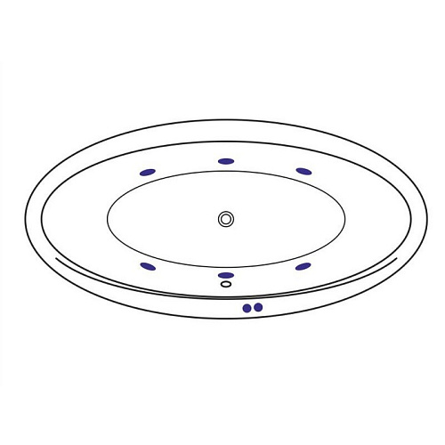 Комплект поставки включает в себя: - Ванна на каркасе, со сливом-переливом; - Гидромассажная система (6 форсунок MIDI-JET); - Пневматическое управление (пневмокнопка вкл/выкл, регулятор подачи воздуха в систему).