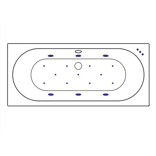 Комплект поставки включает в себя: - Ванна на каркасе, со сливом-переливом; - Гидромассажная система (6 форсунок MIDI-JET) с функцией "Пульсирующий режим"; - Аэромассажная система (11 форсунок AERO-JET) с функцией регулировки интенсивности массажа; - Автоматическая продувка аэромассажной системы; - Сенсорное управление на 3 функции с датчиком уровня воды (защита от сухого пуска); - Хромотерапия с функцией "Стоп" (7 режимов работы).