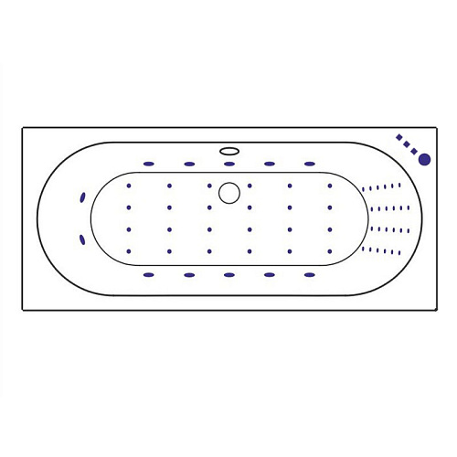 Комплект поставки включает в себя: - Ванна на каркасе, со сливом-переливом; - Гидромассажная система (10 форсунок MICRO-JET) с функцией "Пульсирующий режим"; - Массаж спины (24 форсунок NANO-JET); - Аэромассажная система (24 форсунок NANO-JET) с функцией регулировки интенсивности массажа; - Автоматическая продувка аэромассажной системы; - Массаж ступней (2 форсунки MICRO-JET); - Сенсорное управление на 3 функции с датчиком уровня воды (защита от сухого пуска); - Кран-баланс (регулировка системы массажа спины); - Хромотерапия с функцией "Стоп" (7 режимов работы).
