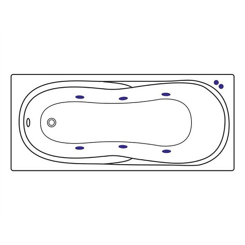 Комплект поставки включает в себя: - Ванна на каркасе, со сливом-переливом; - Гидромассажная система (6 форсунок MIDI-JET); - Пневматическое управление (пневмокнопка вкл/выкл, регулятор подачи воздуха в систему).