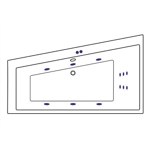 Комплект поставки включает в себя: - Ванна на каркасе, со сливом-переливом; - Гидромассажная система (6 форсунок MIDI-JET); - Массаж спины (6 форсунок MICRO-JET); - Пневматическое управление (пневмокнопка вкл/выкл, регулятор подачи воздуха в систему