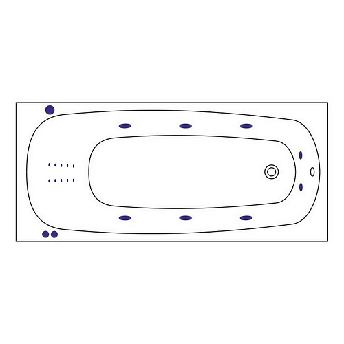 Комплект поставки включает в себя: - Ванна на каркасе, со сливом-переливом; - Гидромассажная система (6 форсунок MIDI-JET); - Массаж спины (10 форсунок NANO); - Массаж ступней (2 форсунки MICRO-JET); - Пневматическое управление (пневмокнопка вкл/выкл, регулятор подачи воздуха в систему); - Кран-баланс (регулировка системы массажа спины); - Защита от сухого пуска.