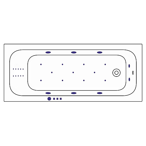 Комплект поставки включает в себя: - Ванна на каркасе, со сливом-переливом; - Гидромассажная система (6 форсунок MIDI-JET) с функцией "Пульсирующий режим"; - Аэромассажная система (11 форсунок AERO-JET) с функцией регулировки интенсивности массажа; - Автоматическая продувка аэромассажной системы; - Массаж спины (10 форсунок NANO); - Массаж ступней (2 форсунки MICRO-JET); - Кран-баланс (регулировка системы массажа спины); - Сенсорное управление на 3 функции с датчиком уровня воды (защита от сухого пуска); - Хромотерапия с функцией "Стоп" (7 режимов работы).