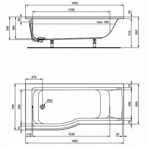 Ванна Ideal Standard E113401 Connect Air акриловая 170х80 см, Euro White (евробелый)