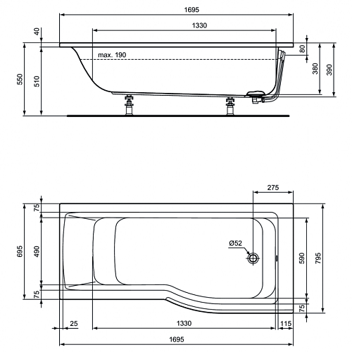 Ванна Ideal Standard E113501 Connect Air акриловая 170х80 см, Euro White (евробелый)