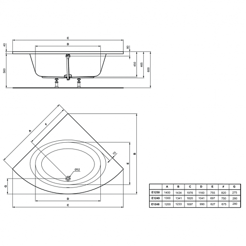 Ванна Ideal Standard E125001 Connect Air акриловая 140х140 см, Euro White (евробелый)