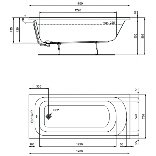 Ванна Ideal Standard W004501 Simplicity акриловая 170х75 см, Euro White (евробелый) купить по доступной цене