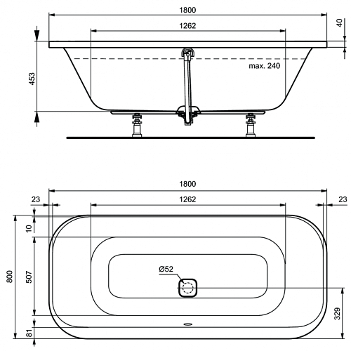 Ванна Ideal Standard K747201 Tonic II акриловая 180х80 см, Euro White (евробелый)