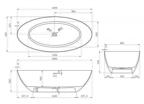Ванна из искусственного камня Abber Stein AS9625-1.8