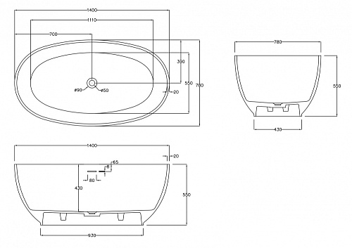 Ванна из искусственного камня Abber Stein AS9641-1.4