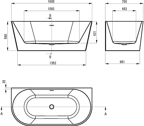 Ванна Deante KDS_016W Silia акриловая отдельностоящая/пристенная 160х75 см, белая
