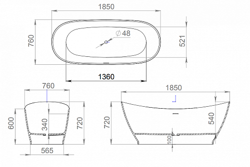 Тип товара Ванна отдельностоящая