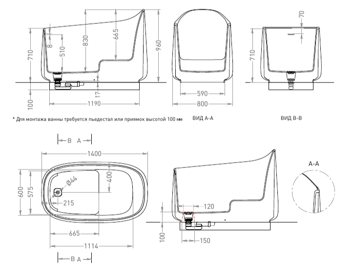 Оснащение Ванна, донный клапан, сифон, декор.накладка на слив, интегрированный слив-перелив
