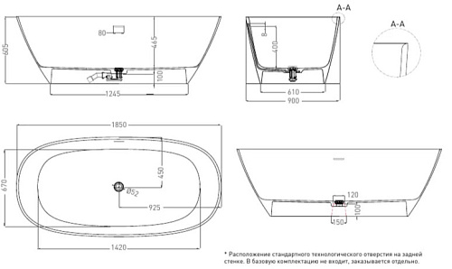 Оснащение интегрированный слив-перелив, сифон, донный клапан "Click-Clack" белый