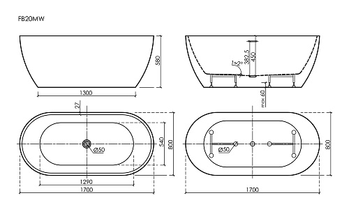 Овальная классическая форма - комфорт и эргономичность Ванны изготовлена из 100% литьевого акрилового листа, толщиной 3,5 мм Укрепленное дно - использование высокопрочной плиты делает дно максимально жестким и невероятно прочным Усиленный каркас из нержавеющей стали с регулируемыми ножками Сифон с гидрозатвором - предотвращает проникновение неприятных запахов из канализации Донный клапан "click- clack" - легкое открывание и закрывание нажатием Щелевой слив - перелив, аккуратное технологическое отверстие не требует подбора и установки декоративных накладок и предотвращает переполнение ванны