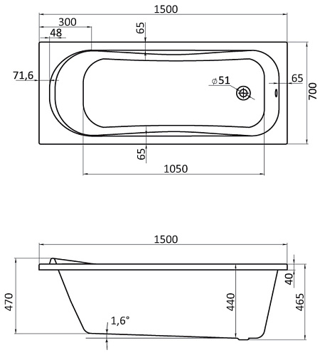 Ванна акриловая Santek 1WH302213 Тенерифе 150х70 см, белая