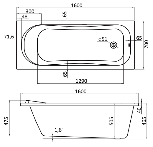 Ванна акриловая Santek Тенерифе 1WH302357 160х70 см, белая