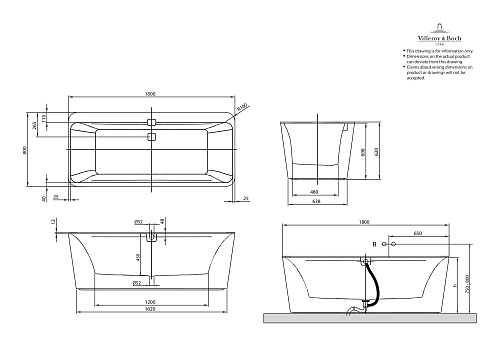 Ванна Quaryl Villeroy & Boch UBQ180SQE7PDV-01 Squaro Edge 12 с панелью, альпийский белый