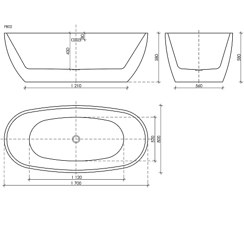 Ванна Flo акриловая отдельностоящая. Цвет белый. Размер 1700х800х580 мм. Слив-перелив, донный клапан "Click-Clack" в комплекте, хром.