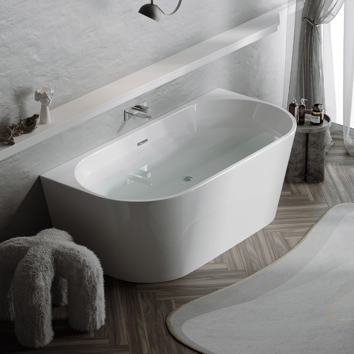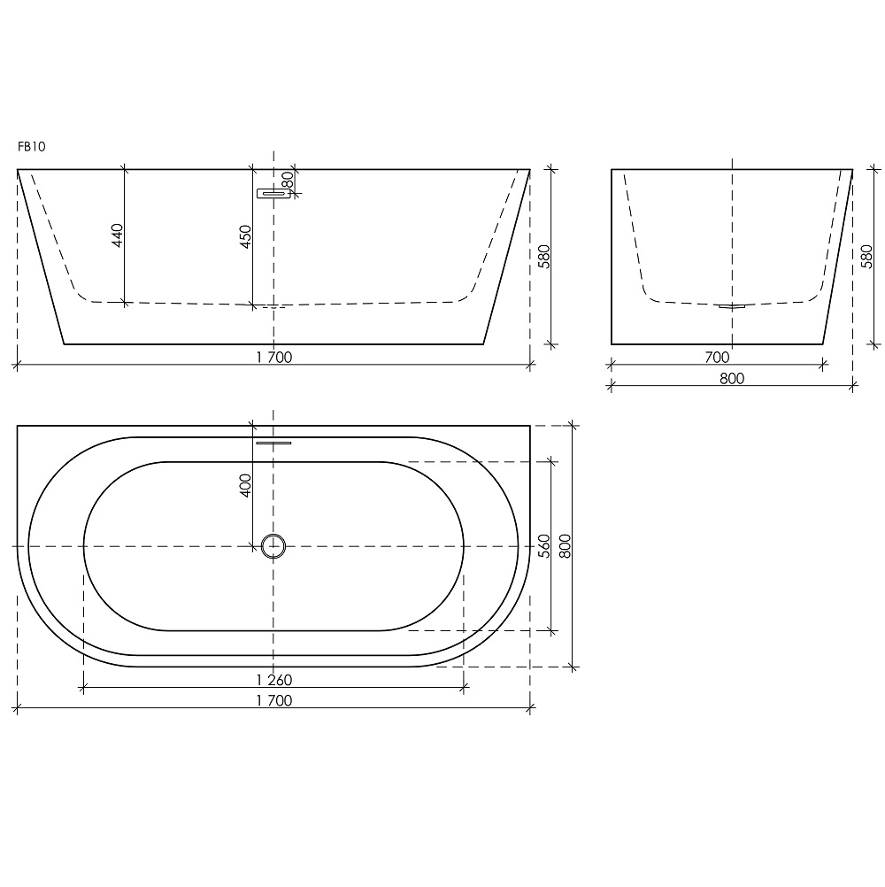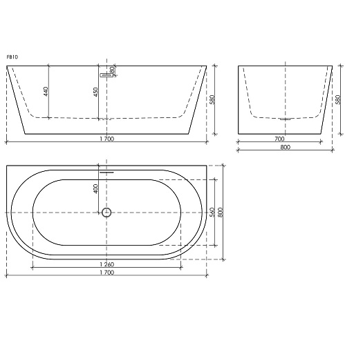 Ванна First акриловая отдельностоящая пристенная. Цвет белый. Размер 1700х800х580 мм. Слив-перелив, донный клапан "Click-Clack" в комплекте, хром.