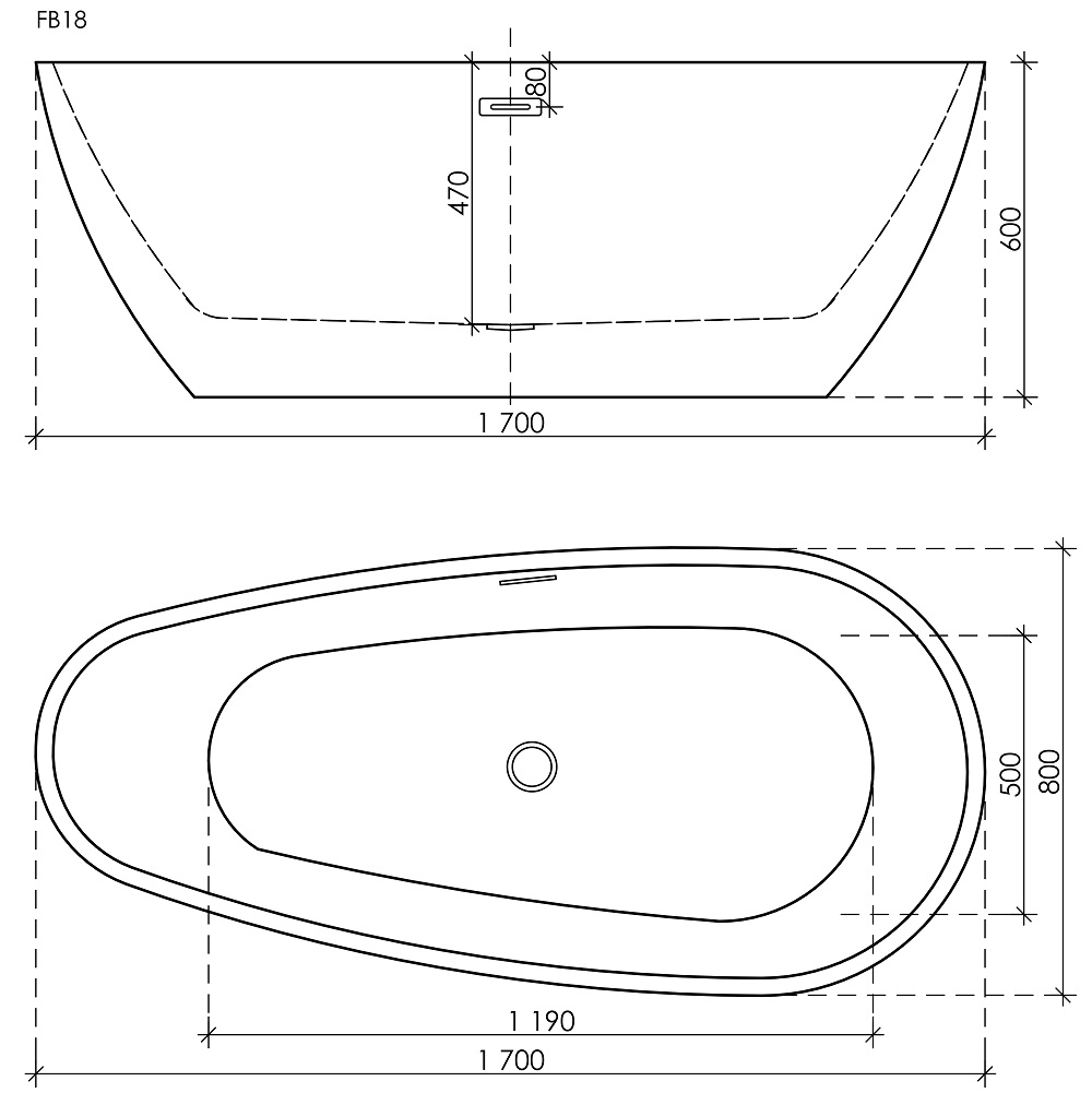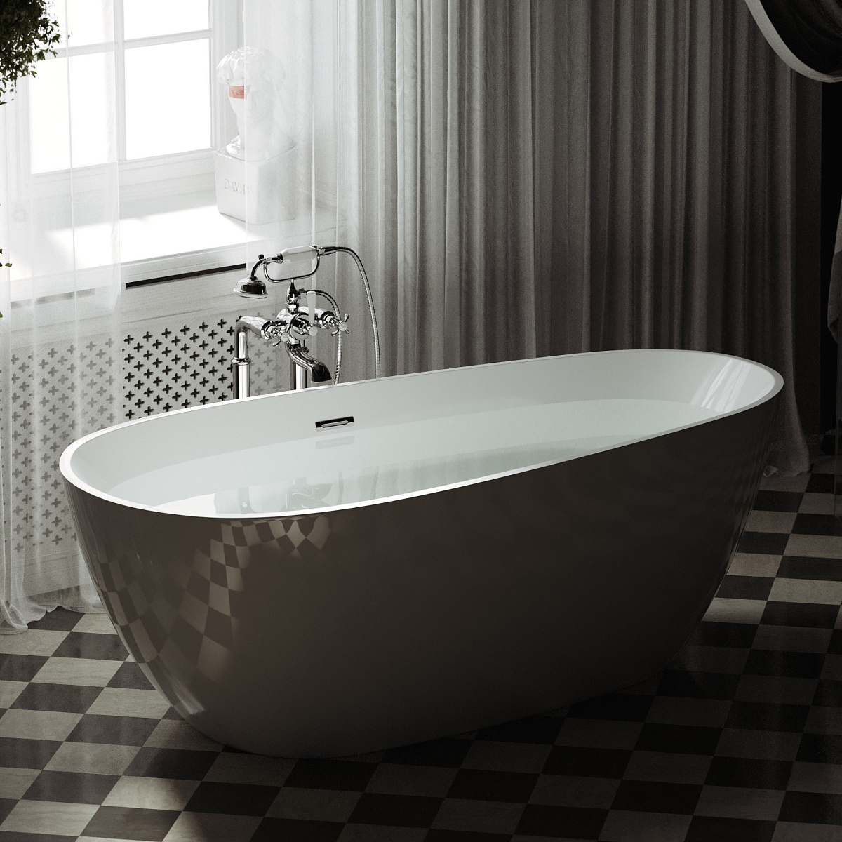 Ванна Avocado акриловая отдельностоящая. Цвет белый. Размер 1700х800х600 мм. Слив-перелив, донный клапан "Click-Clack" в комплекте, хром.