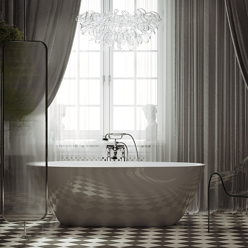 Оснащение Ванна с экраном, алюминиевая рама, слив-перелив интегрированный, донный клапан "Click-Clack", сифон.