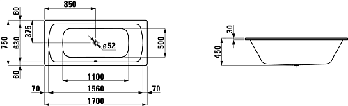 Ванна стальная Laufen Pro 2.2695.3.600.040.1 купить по доступной цене
