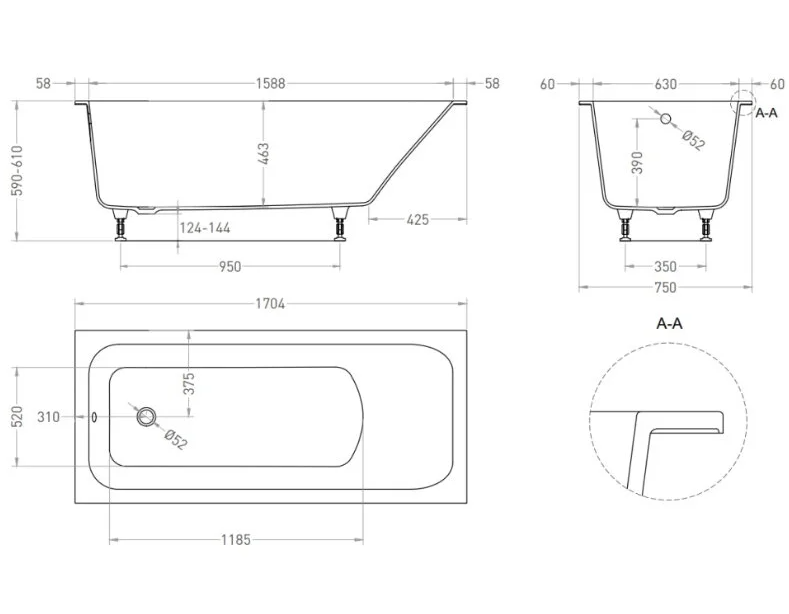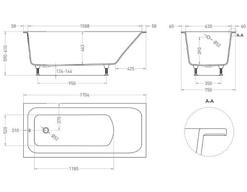 Тип товара Ванна встраиваемая