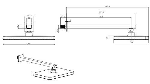 Оснащение 1. Верхний душ 2. Держатель для душа 3. Декоративный отражатель 4. Монтажный комплект