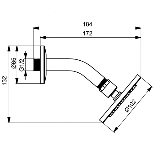 Верхний душ Ideal Standard B9436AA Idealrain S1, 10 см, регулируемый, с угловым держателем, Chrome (хром)