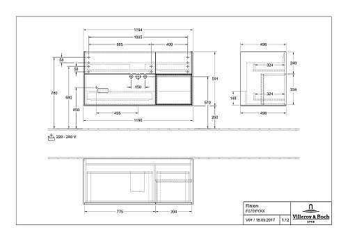 Тумба Villeroy & Boch F070HFPD Finion под раковину, Black Matt Lacquer