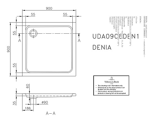 Душевой поддон Villeroy & Boch UDA0906DEN1V-01 O.novo