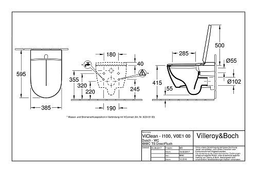 Техническая информация: Санфарфор. крепежный комплект входит в комплект поставки. EN 997, EN 1717, EN60 335-2-84, EN60 335-1, EN 55014-1, EN 55014-2, EN61000-3-2, EN61000-3-3, EN300 328, EN301489-1, EN301489-17. с системой экономии воды AQUAREDUCT®: объем воды для смыва 3 / 4,5 литра. комбинированная упаковка. унитаз-биде ViClean-I100, 385 x 595 x 400 mm, 220-240 V AC / 50 Hz, Дистанционное управление, Сиденье с крышкой