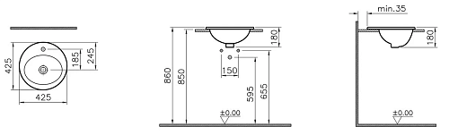 Раковина Vitra 5466B003-0001 S20 встраиваемая сверху 45 см, c переливом, белая