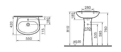 Раковина Vitra 9600B003-7650 Normus подвесная 55х42 см, с пьедесталом, белая