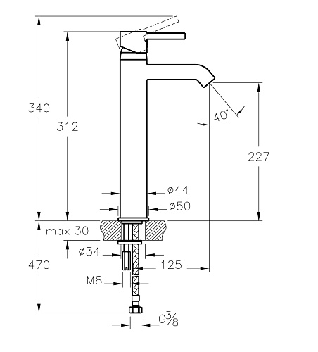 Смеситель Vitra A41990EXP Minimax S для раковины-чаши, высокий, хром