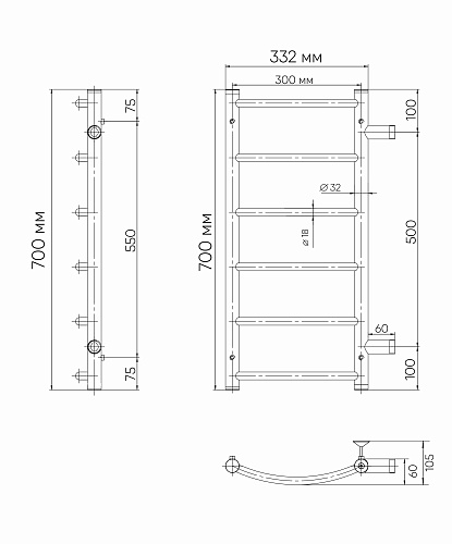 Полотенцесушитель водяной INDIGO Arc с боковым подключением в размере 700х300 (ВхШ) выбирают за его классический вид – лесенки и функциональность. Модель изготовлена из высококачественной нержавеющей стали. Качественная металлообработка в местах подключений обеспечивает плотное прилегание прокладки. Изделие окрашено порошковой краской по специальной технологии.