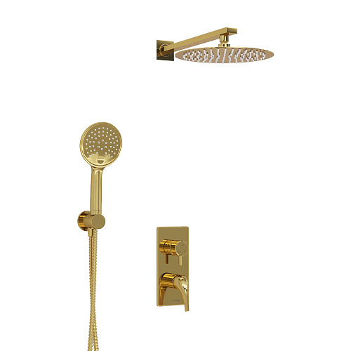 Характеристики Керамический картридж 40 мм, Wanhai Керамический поворотный переключатель Душевая насадка ? 248 мм, 126 форсунок, нержавеющая сталь Лейка 3-функциональная с системой защиты от известковых отложений Комплект скрытого монтажа Наружная часть смесителя Входит в комплект Смеситель для ванны и душа Sauer 7171 Подключение шланга A189 Шланг для душа 1500 мм A197 Верхняя душевая насадка A208 Настенный верхний излив для душа A183 Лейка 3-функциональная A207 Материал латунь, нержавеющая сталь, ABS-пластик Покрытие PVD-покрытие "глянцевое золото"