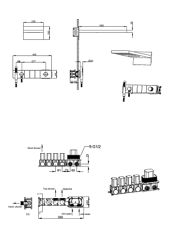 Встроенная душевая система 55х45х110 см Boheme ZODIAC 132-B черный