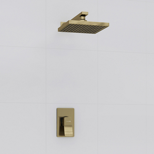 Характеристики Керамический картридж 35мм, Sedal (Испания) Душевая насадка 200х200 мм, 144 форсунки, ABS-пластик Комплект скрытого монтажа Наружная часть смесителя Входит в комплект Смеситель для душа Exter 1651 Верхняя душевая насадка A140 Верхний излив для душа A110 Материал латунь, ABS-пластик Покрытие «светлая бронза»
