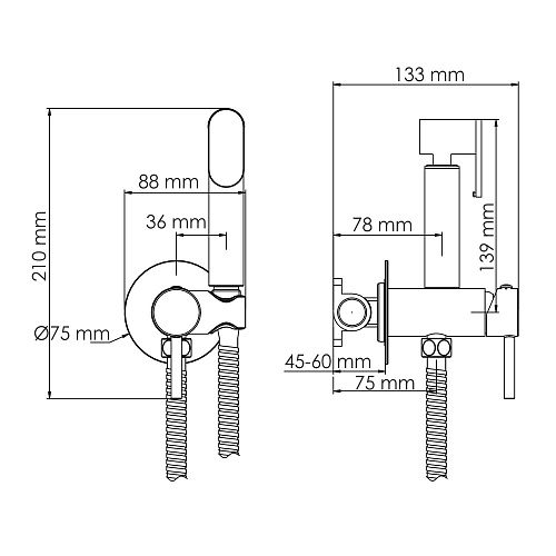 Смесители для душа с гигиенической лейкой имеют встраиваемую систему монтажа. Это отличное решение, которое помогает сохранить свободное пространство и получить весь необходимый функционал.