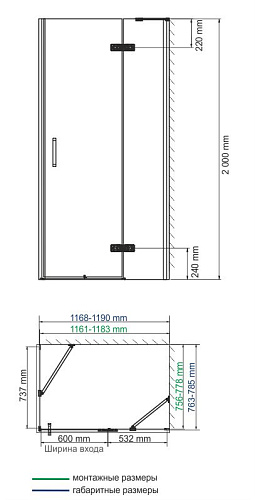 1) Закаленное прозрачное стекло 8 мм стандарта EN 12150-1. Обладает термической прочностью и совершенно безопасно для человека. Стекло поддается специальной обработке, что делает края стекла гладкими, ровными и совершенно безопасными. Об открытые части стекла невозможно порезаться. 2) Долговечное покрытие стекла WasserSchutz (Германия) защищает поверхность стекла от разводов воды и гарантирует легкий уход за изделием. 3) Анодированный алюминиевый профиль 46 мм 4) Регулирующий профиль до 13 мм - Возможность регулировки бокового профиля позволяет компенсировать неровности стен и настроить размер душевой двери под индивидуальный интерьер. 5) Прочный распашной механизм на петлях из латуни - Механизм рассчитан минимум на 30 000 рабочих циклов. Это значит, что семья из четырех человек сможет пользоваться душевой дверью минимум 10 лет. Распашной механизм дает возможность широкого проема для входа внутрь душевого уголка. 6) Силиконовые уплотнители - необходимы для герметичности изделия. 7) Силиконовый уплотнитель д