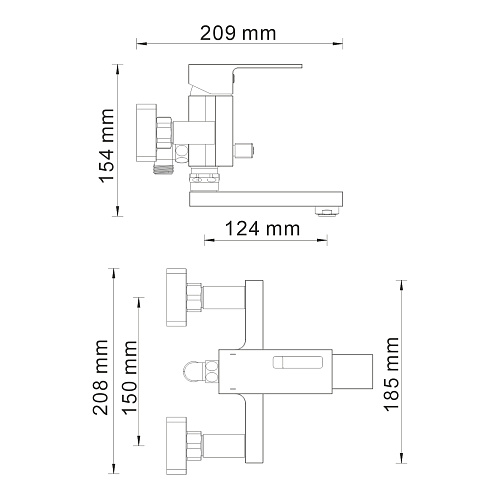 Смеситель WasserKRAFT 1501 Alme для ванны, с коротким изливом, хромоникелевое покрытие