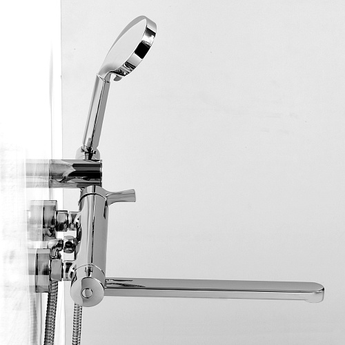 Оснащение Лейка 5-функциональная с системой защиты от известковых отложений, Шланг металлический 1500 мм, подключение к лейке, Поворотное настенное крепление для душа
