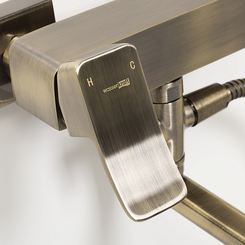 Смеситель WasserKRAFT 1602L Exter для ванны, с длинным изливом, светлая бронза