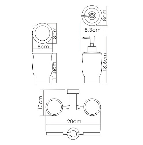 Материал металл, уплотнительные пластиковые кольца, фарфор Покрытие хромоникелевое В комплект входит: C184 Стакан C183 Дозатор Donau C177 Держатель двойной