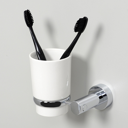 Материал металл, уплотнительные пластиковые кольца, фарфор Покрытие хромоникелевое В комплект входит: C180 Стакан Donau C178 Держатель одинарный