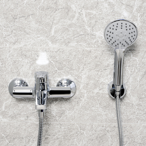 Оснащение Лейка 3-функциональная с системой защиты от известковых отложений, Шланг металлический 1500 мм, подключение к лейке, Фиксированное настенное крепление для душа, Набор для монтажа